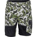 men's working shorts with elastic waist; elastic inovative TRIFIBETEX® material with trendy camou print; durable tripple stitching of legs and crotch; spacious multifunctional front pockets with tool straps; reflective details tone in tone.