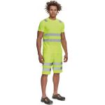 men's fully HI-VIS lightweight shorts with reflective stripes, elastic waist; 2 side pockets, 1 coins pocket; 2 back pockets.
