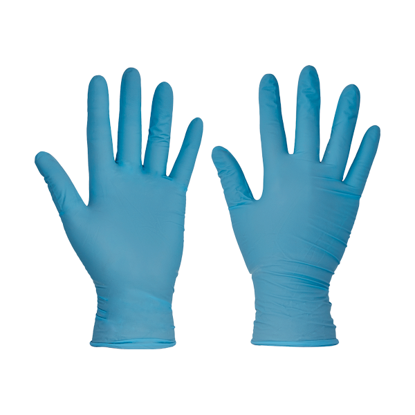 Disposable nitrile powdered gloves.