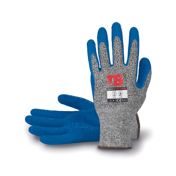 glove with grey seamless Tuffalene® and glass fibre liner dipped in blue latex on palm knitwrist cuff 13 GG