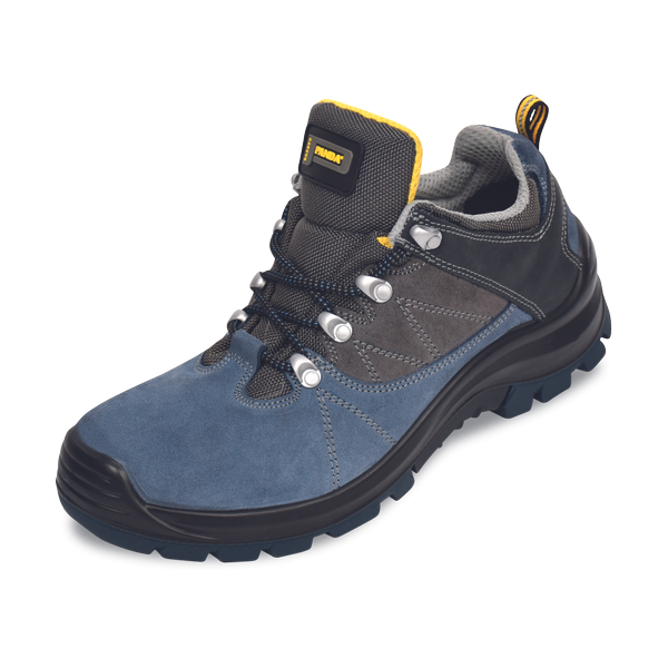 Safety shoes with a non-metallic toe cap and a aramid puncture resistant insole. Outsole made from PU/TPU. Upper made of suede leather in combination with grain leather.