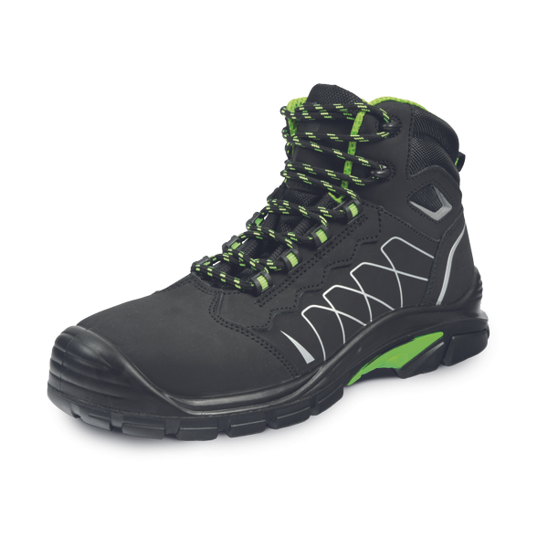 Modern safety ankle boots with a composite anti-puncture insole and a composite toe cap that protects against compression with a force of up to 15 kN or a load weighing up to 20 kg falling from a height of 1 m. The anti-static sole made of a combination of polyurethane and very durable rubber guarantees not only comfort, but also safety thanks to the non-slip properties of the sole, which is also resistant to oils and abrasion. The upper part of the shoe is made of natural leather "NUBUCK" and the inner lining is made of breathable polyester. Reflective elements guarantee increased user visibility. This model is equipped with a comfortable inner insole, which, thanks to the gel heel, absorbs shocks even better and brings a maximum feeling of comfort during work. These shoes look like sports shoes, but they protect your feet perfectly.