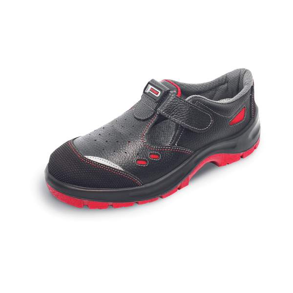 Safety sandal with a composite toe cap, which protects against compression with a force of up to 15 kN or the fall of a load weighing up to 20 kg from a height of 1 m. The antistatic sole made of double-density polyurethane guarantees not only comfort but also safety thanks to the anti-slip properties of the outsole, which is also resistant to oils and abrasion. The upper of the shoe is made of natural leather Barton and the inner lining of breathable material Airnet Mesh. The shoes do not contain metal parts. This model belongs to the Strong NUOVO collection.