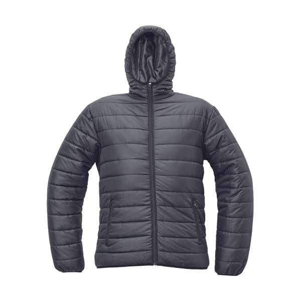 men´s light insulated jacket with zipper closure; elastic waist; 2 side pockets with zipper closure.