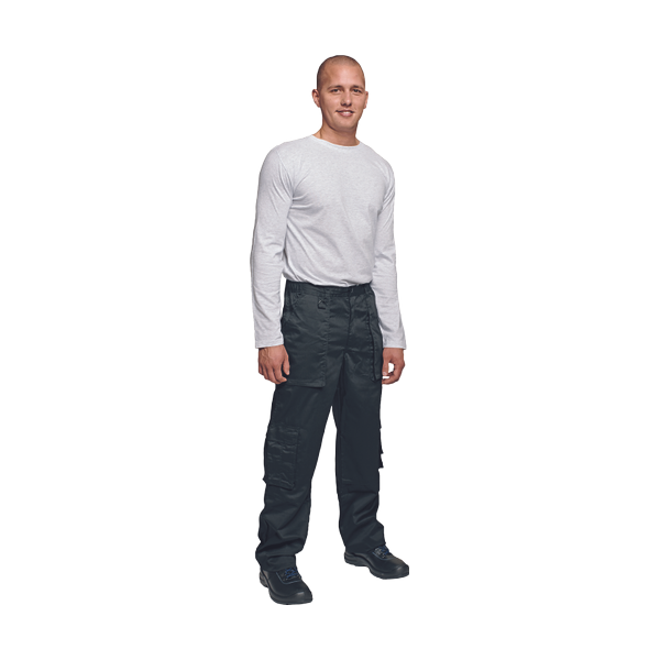 men's hard-wearing pants with multifunctional pockets; elastic waist with belt loops.