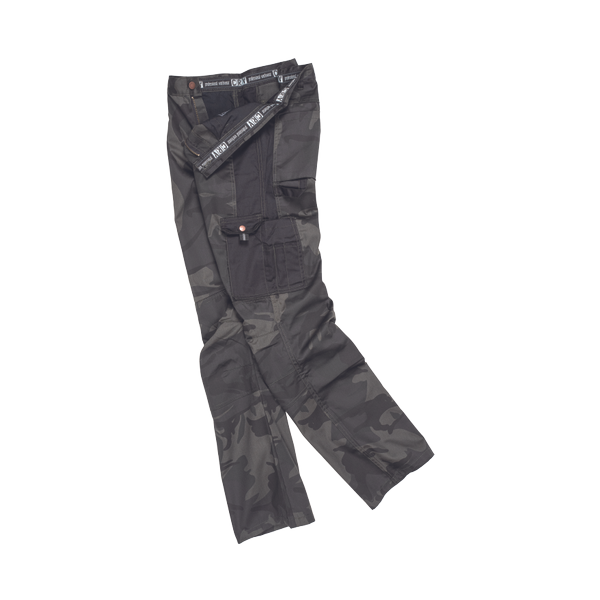 men's pants made from light twill fabric in fashionable camouflage colour combinations; 6 functional pockets; reinforced knee parts.