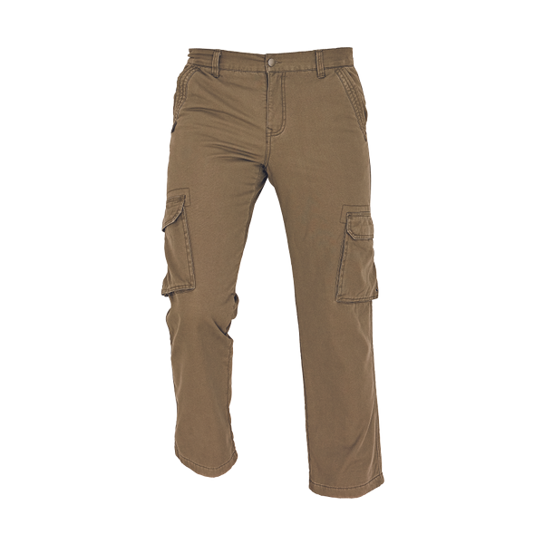 men's insulated cargo winter pants; inside fabric 100% polyester micro fleece; 2 front side pockets, 2 thigh cargo pockets, 2 back flap pockets with press buttons.