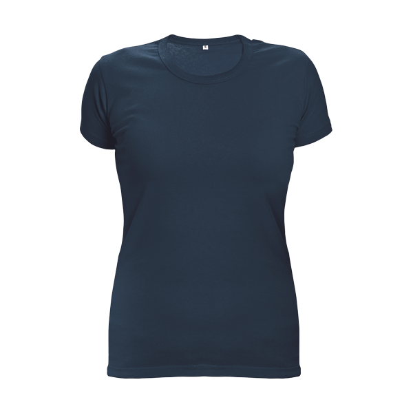 lady's T-shirt with short sleeves; seamless body; due to added elastan keeps its shape and the cut accentuates ladies figure; T-shirt extends deep down the sides; suitable for printing and embroidery.