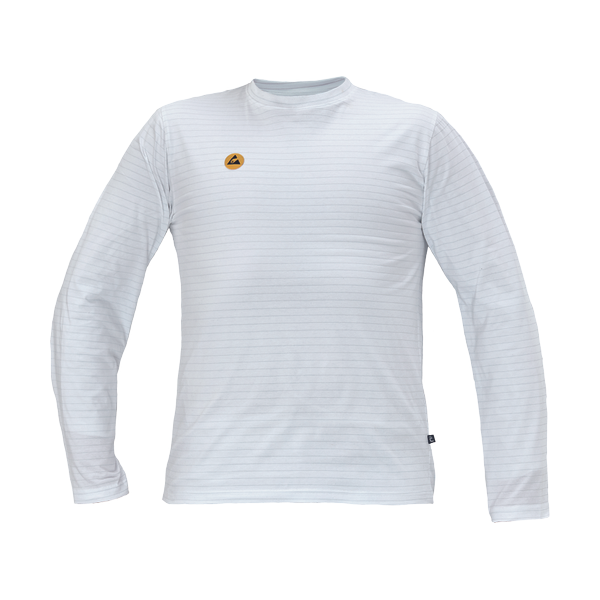 ESD T-shirt with long sleeves from cotton single jersey knit with antistatic fibre; ensuring protection of electronic devices against electrostatic effects; universal cut.