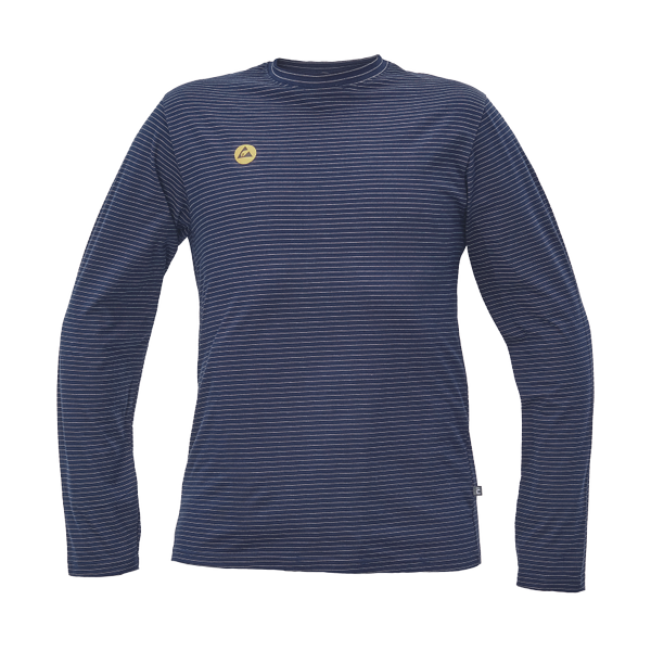 ESD T-shirt with long sleeves from cotton single jersey knit with antistatic fibre; ensuring protection of electronic devices against electrostatic effects; universal cut.