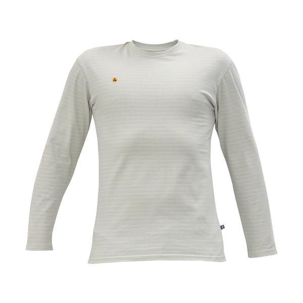 ESD T-shirt with long sleeves from cotton single jersey knit with antistatic fibre; ensuring protection of electronic devices against electrostatic effects; universal cut.