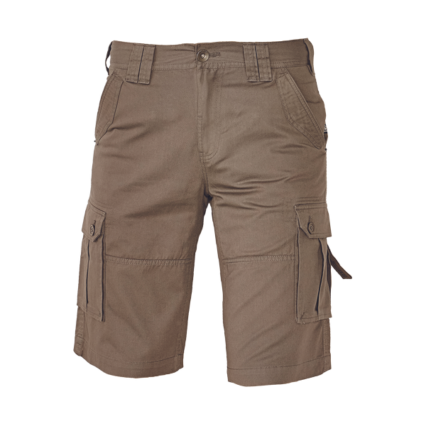 men's cotton shorts for leisure time and outdoor activities; modern cut with fashionable design and functional details; 2 front pockets, 2 thigh flap pockets, 2 back pockets.