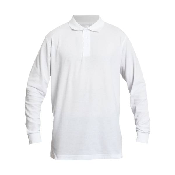 men's poloshirt with long sleeves; 3 buttons placket; flat knit collar and sleeve hem.